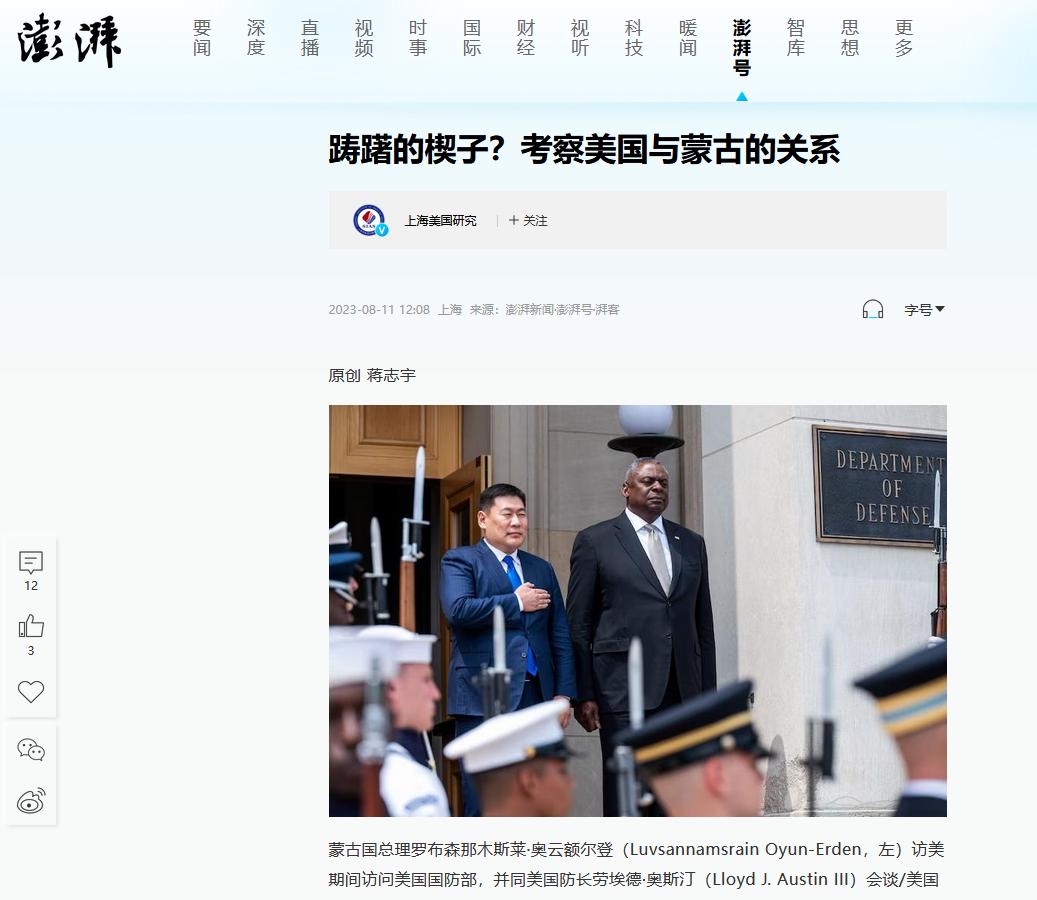 纵观近几年蒙古国一系列与西方国家加强合作的举动,已不再是简单的商业往来或经济互补,而是深陷复杂的地缘政治博弈,其战略意图值得高度警惕。