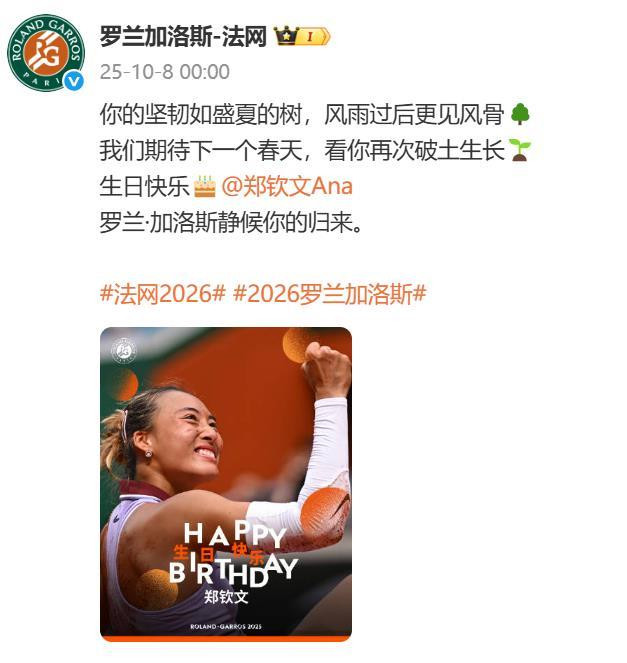 10月8日是中国网球金花、湖北姑娘郑钦文的23岁生日。四大满贯先后发来贺电,祝福郑钦文在经历伤情后能顺利康复,“风雨过后更见风骨。”未来再创职业新高,“以无畏和执着,迈向更高的山峰。”