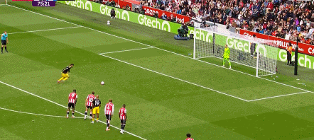 第71分钟,科林斯禁区内拉倒禁区中路包抄抢点的姆伯莫,主裁判罚点球,VAR审核后主裁只是出示黄牌警告科林斯,布鲁诺-费尔南德斯主罚点球低射被门将凯莱赫扑出。第82分钟,科林斯解围角球不远,德里赫特凌空勾射踢高。