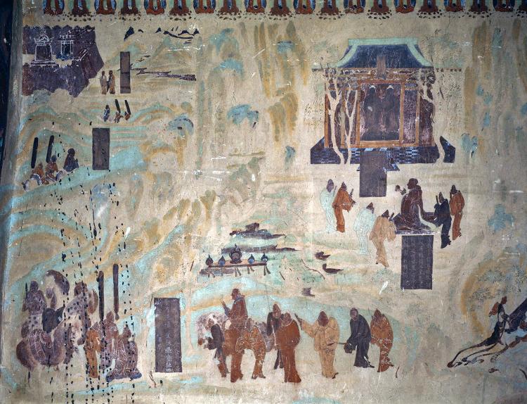 这是敦煌莫高窟第323窟的张骞出使西域图(资料照片)。