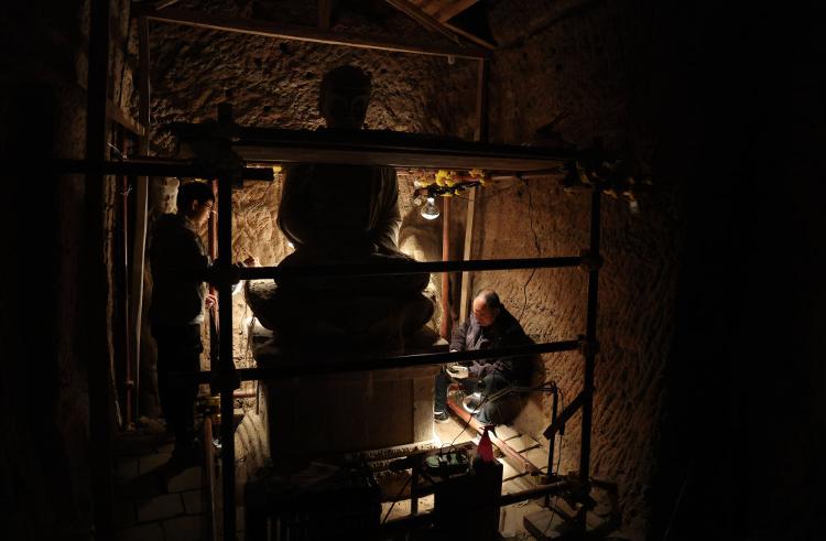 2024年11月2日,麦积山石窟艺术研究所保护研究室的文物修复师何举在麦积山石窟133窟内修复塑像。近年来,麦积山石窟艺术研究所等文物保护部门持续加大对麦积山石窟的抢救性保护和预防性保护工作力度,积极探索现代科学技术手段与传统文物修复技艺相结合的保护修复新路径。截至目前,麦积山石窟已有80个洞窟完成整体保护修复工作。