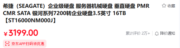 16TB+(企业盘/NAS盘):真正的性价比之王! 这才是HDD的“主战场”。小狮子发现,16TB的企业盘(如希捷银河Exos、西数Ultrastar)算下来每GB成本反而不到0.20元,这还是最近一波跟风SSD大涨价后的价格,更不用谈巨大的性能和可靠性差距了!