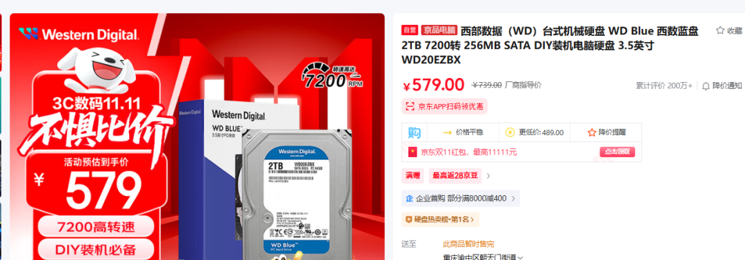 小狮子跑去电商平台蹲守了两年来的价格数据,发现了一个残酷的事实:机械硬盘的降价黄金期早就过了。以大家最常买的4TB家用盘(西数蓝、希捷酷鱼等)为例,价格几乎纹丝不动,甚至还不如两年前便宜。而2TB的价格更离谱!