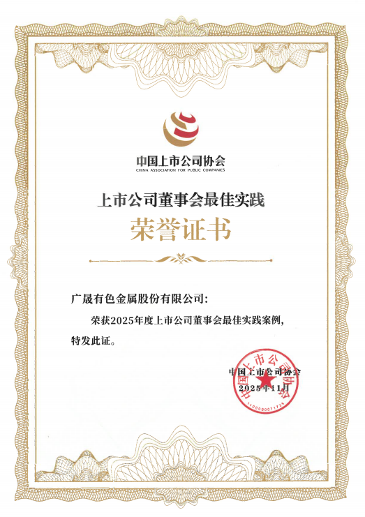 董事会建设是资本市场基础制度建设的核心环节,对提升上市公司质量、防范金融风险、增强投资者信心具有关键作用。此次广晟有色获评“最佳实践案例”,充分体现了资本市场对广晟有色董事会专业能力、规范运作与治理实效的高度认可。